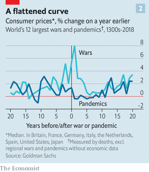 Η ιστορία προσφέρει επίσης έναν οδηγό για το τι κάνουν οι άνθρωποι όταν η ζωή επανέλθει στο φυσιολογικό της ρυθμό. Οι δαπάνες αυξάνονται, ωθώντας την απασχόληση να ανακάμψει, αλλά δεν υπάρχουν πολλά στοιχεία υπερβολών. Η ιδέα ότι οι άνθρωποι γιόρτασαν το τέλος του Μαύρου Θανάτου με «άγρια σεξουαλική δραστηριότητα» και «υστερική καλοζωϊα», όπως υποθέτουν ορισμένοι ιστορικοί, είναι (πιθανώς) αποκρυφική. Η δεκαετία του 1920 ήταν πολύ μακριά από το να αποτελεί μία δεκαετία υπερβολών, τουλάχιστον στην αρχή. Την Παραμονή της Πρωτοχρονιάς του 1920, αφού η απειλή της ισπανικής γρίπης είχε περάσει για τα καλά, «το Broadway και η Times Square έμοιαζαν περισσότερο με τις παλιές μέρες», σύμφωνα με μια μελέτη, αλλά η Αμερική εντούτοις ένιωθε σαν «ένα άρρωστο και κουρασμένο έθνος». Μια πρόσφατη ανάλυση της Goldman Sachs, μιας τράπεζας, εκτιμά ότι το 1946-49 οι Αμερικανοί καταναλωτές ξόδεψαν μόνο το 20% περίπου των επιπλέον αποταμιεύσεών τους. Αυτές οι επιπλέον δαπάνες βοήθησαν σίγουρα την οικονομική έξαρση μετά τον πόλεμο, αν και οι μηνιαίες αναφορές της «επιχειρηματικής κατάστασης» της κυβέρνησης στα τέλη της δεκαετίας του 1940 ήταν γεμάτες ανησυχία για επικείμενη επιβράδυνση (και πράγματι η οικονομία μπήκε σε ύφεση το 1948-49). Η κατανάλωση μπύρας μειώθηκε. Η προσεκτική συμπεριφορά των καταναλωτών μπορεί να είναι ένας λόγος για τον οποίο υπάρχουν λίγες ενδείξεις για αύξηση του πληθωρισμού μετά από μία πανδημία (βλέπε γράφημα 2).