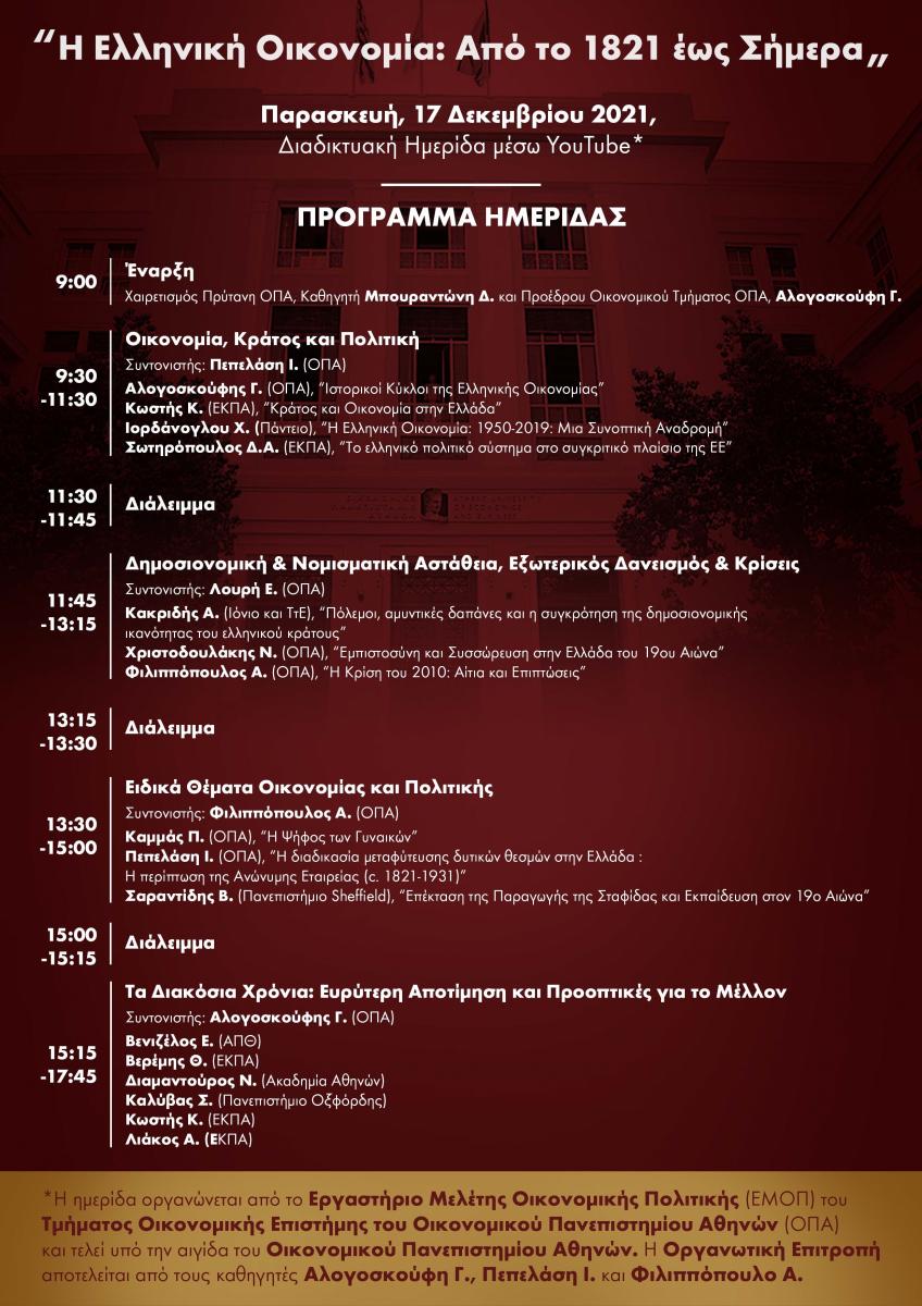 Το Τμήμα Οικονομικής Επιστήμης του Οικονομικού Πανεπιστημίου Αθηνών και το Εργαστήριο Μελέτης Οικονομικής Πολιτικής διοργάνωσαν διαδικτυακτή ημερίδα για τα 200 χρόνια της ελληνικής οικονομίας με τίτλο