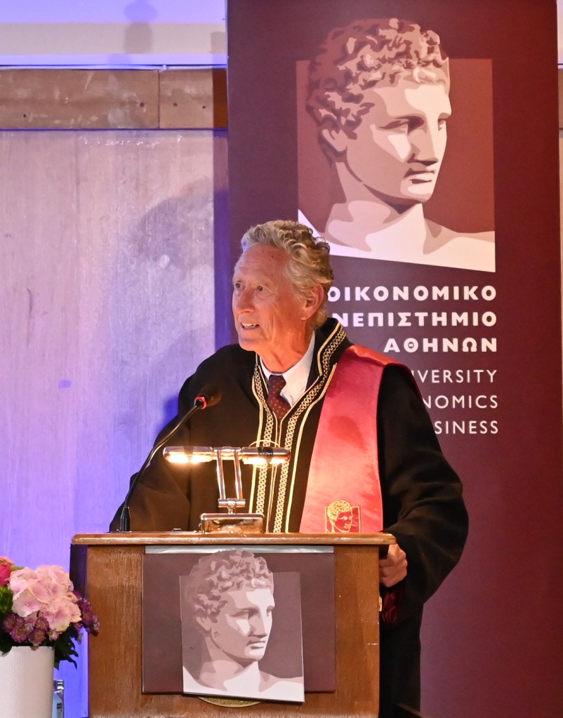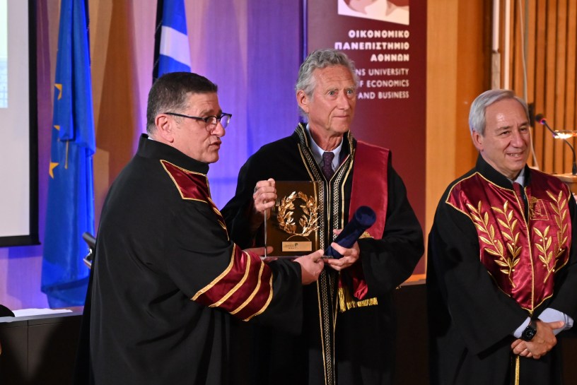 Το Οικονομικό Πανεπιστήμιο Αθηνών διοργάνωσε την Πέμπτη 5 Μαϊου 2022 και ώρα 18:00 στo Αμφιθέατρο «Λεωνίδας Ζέρβας» του Εθνικού Ιδρύματος Ερευνών, την τελετή αναγόρευσης σε Επίτιμο Διδάκτορα του Τμήματος Οικονομικής Επιστήμης, της Σχολής Οικονομικών Επιστημών, του Καθηγητή του Massachussetts Institute of Technology,