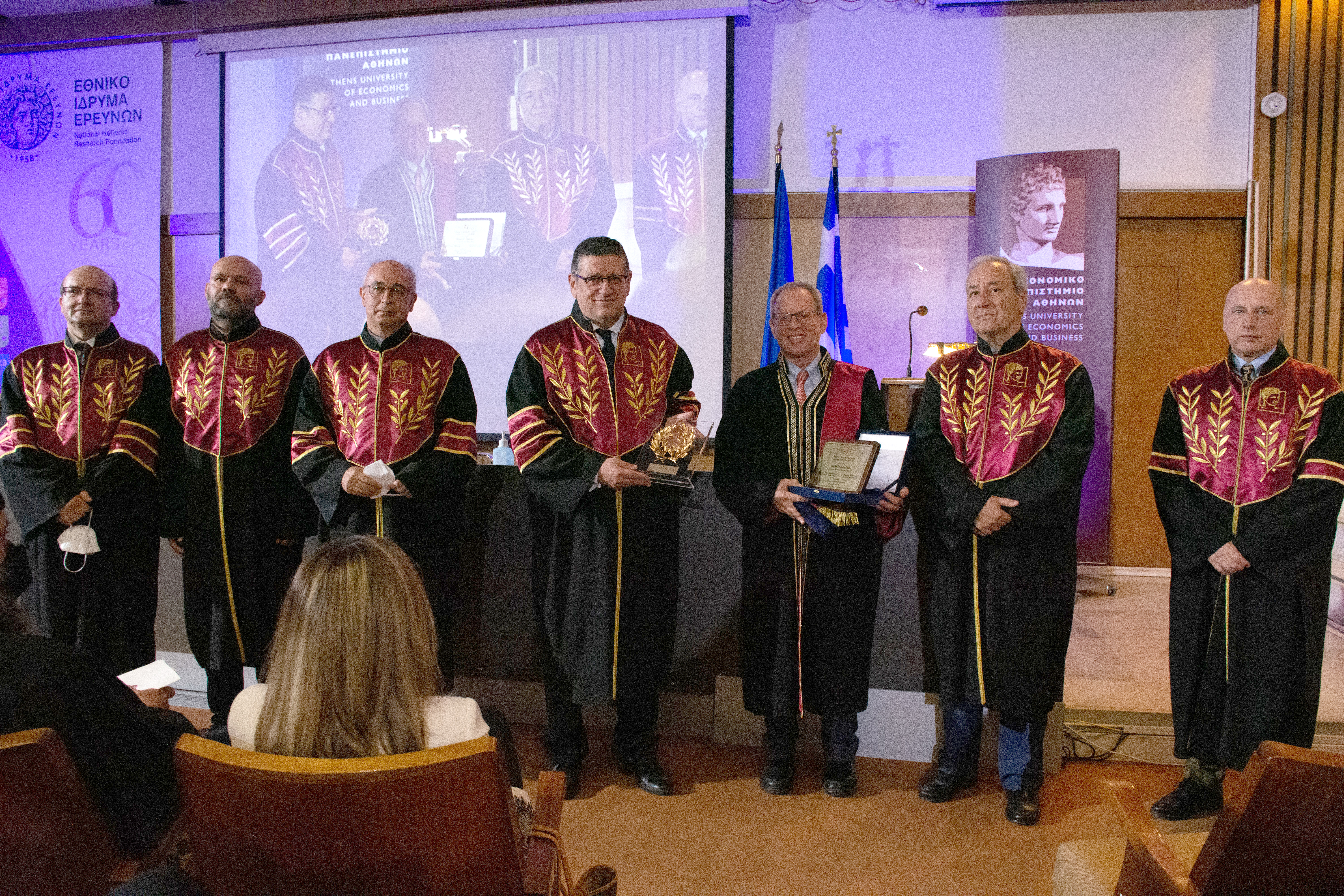 Το Οικονομικό Πανεπιστήμιο Αθηνών διοργάνωσε την Τετάρτη 8 Ιουνίου 2022 και ώρα 18:00 στo Αμφιθέατρο «Λεωνίδας Ζέρβας» του Εθνικού Ιδρύματος Ερευνών, την Τελετή Αναγόρευσης σε Επίτιμο Διδάκτορα του Τμήματος Οικονομικής Επιστήμης, της Σχολής Οικονομικών Επιστημών, του Καθηγητή του Καθηγητή του Harvard University, Ηνωμένων Πολιτειών Αμερικής