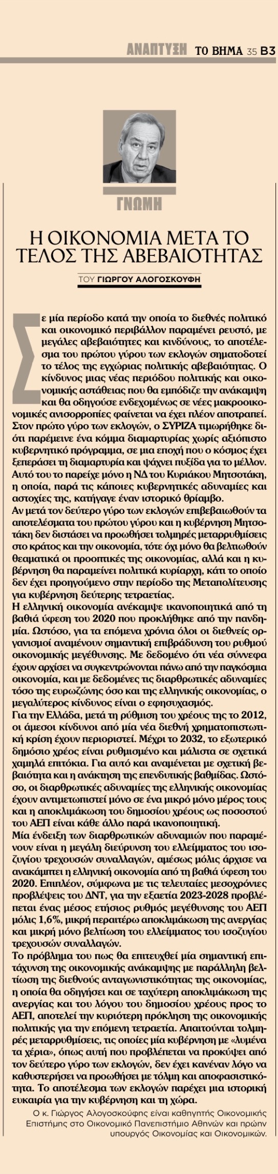 Άρθρο στην εφημερίδα Το Βήμα, 28, Μαϊου 2023