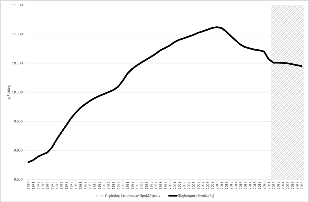 Πώς όμως θα επιτευχθεί ταχύτερη οικονομική ανάκαμψη και ανάπτυξη, σε μια περίοδο που ο ελληνικός πληθυσμός μειώνεται και μάλιστα ταχέως (Γράφημα 5).