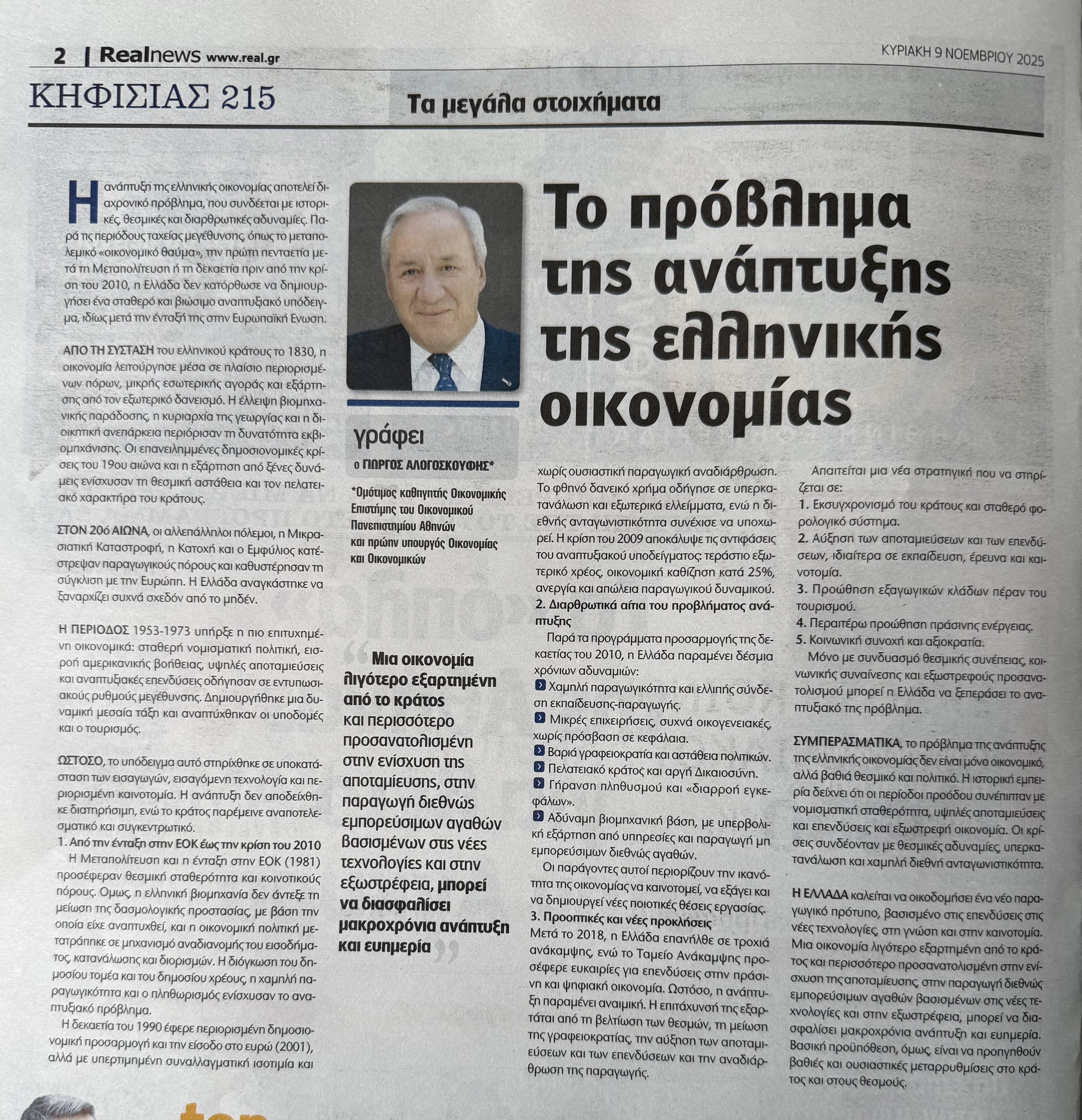 To άρθρο αυτό δημοσιεύθηκε στην εφημερίδα Real News, την Κυριακή, 9 Νοεμβρίου 2025